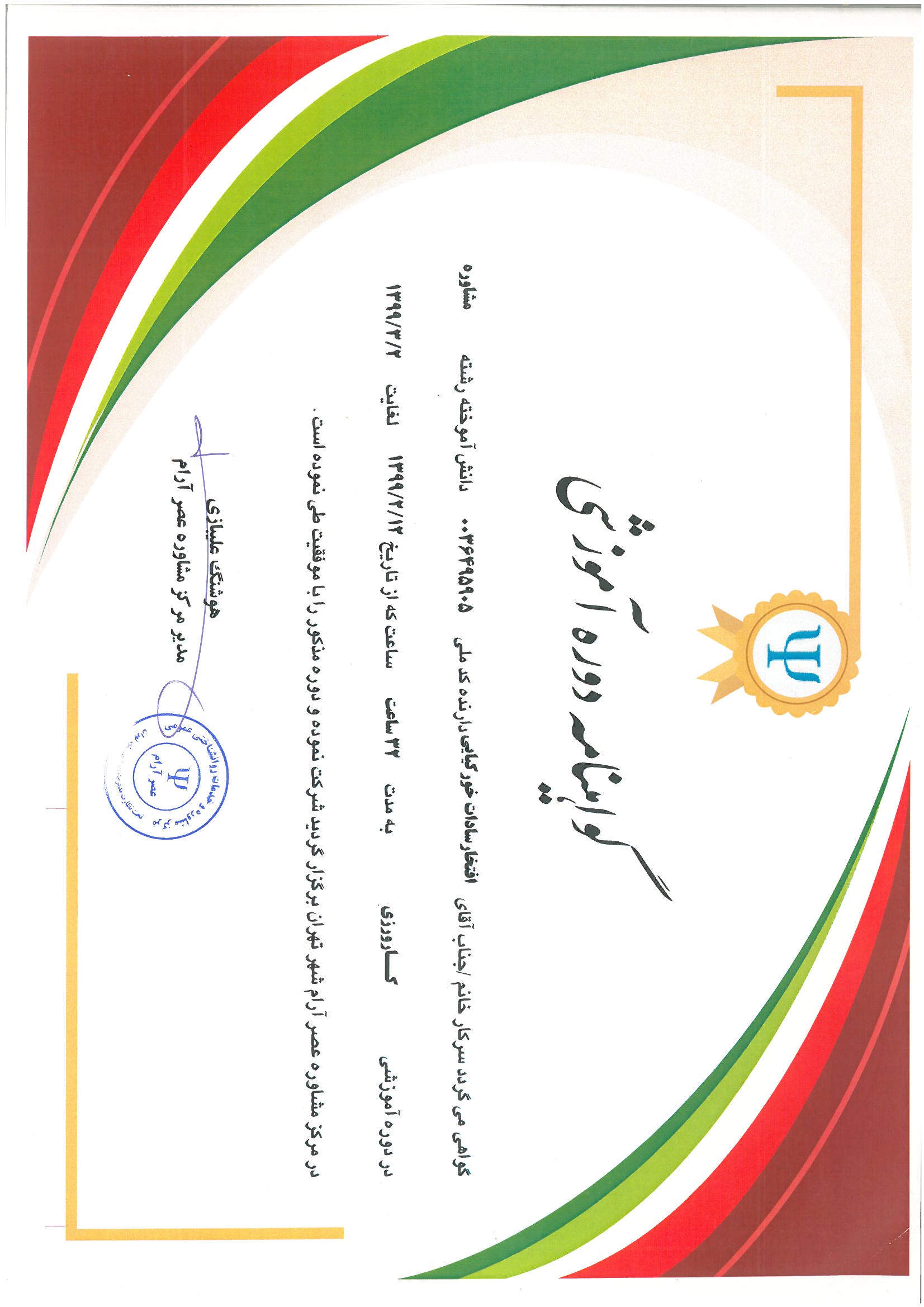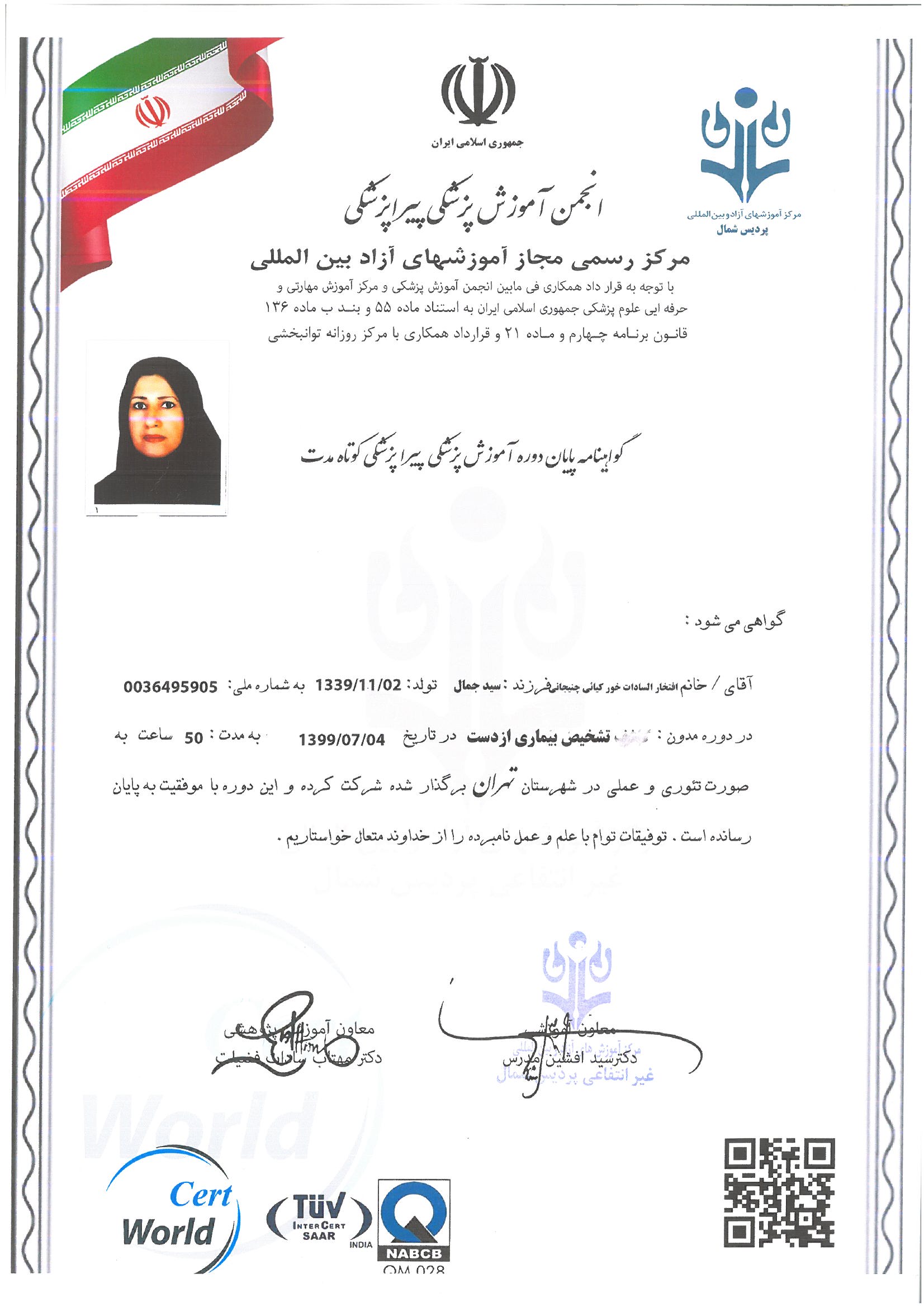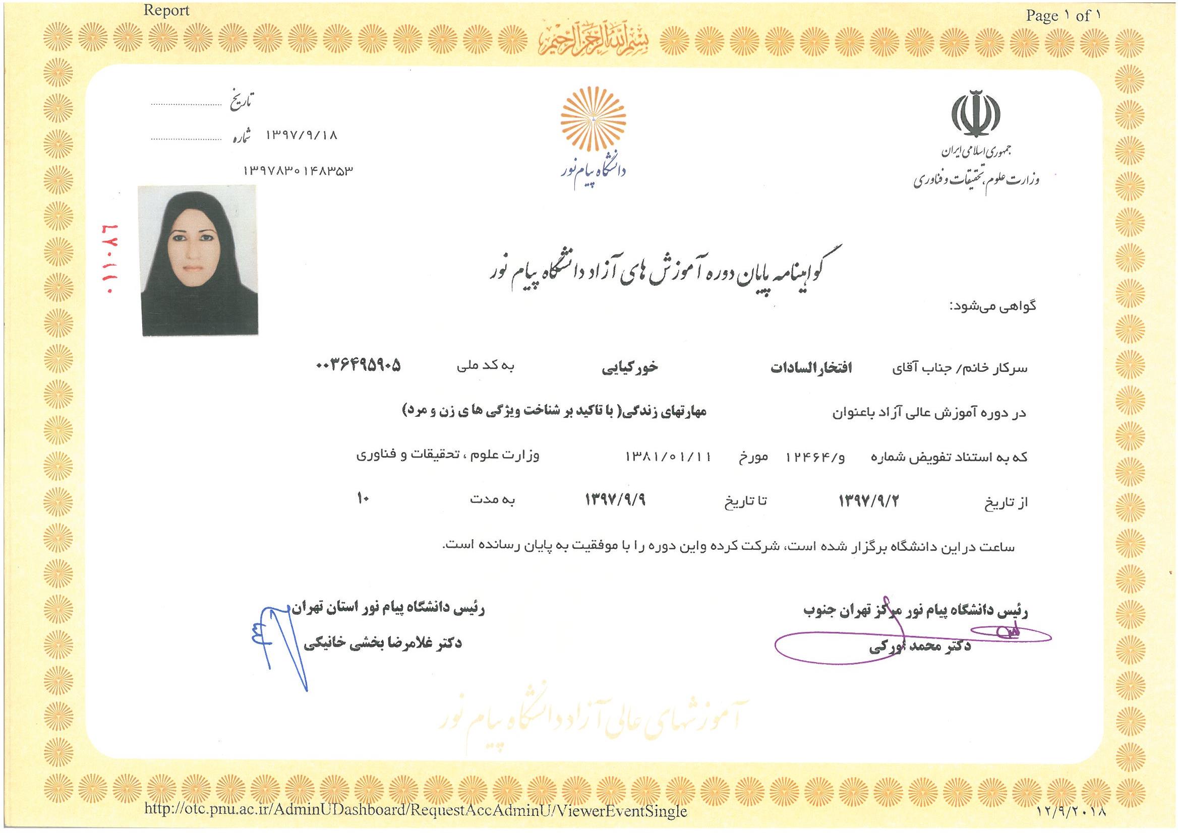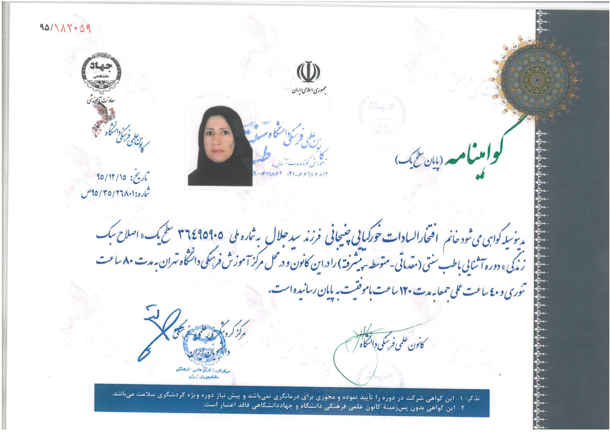 برخی از مدارک و دوره های گذرانده شده:
